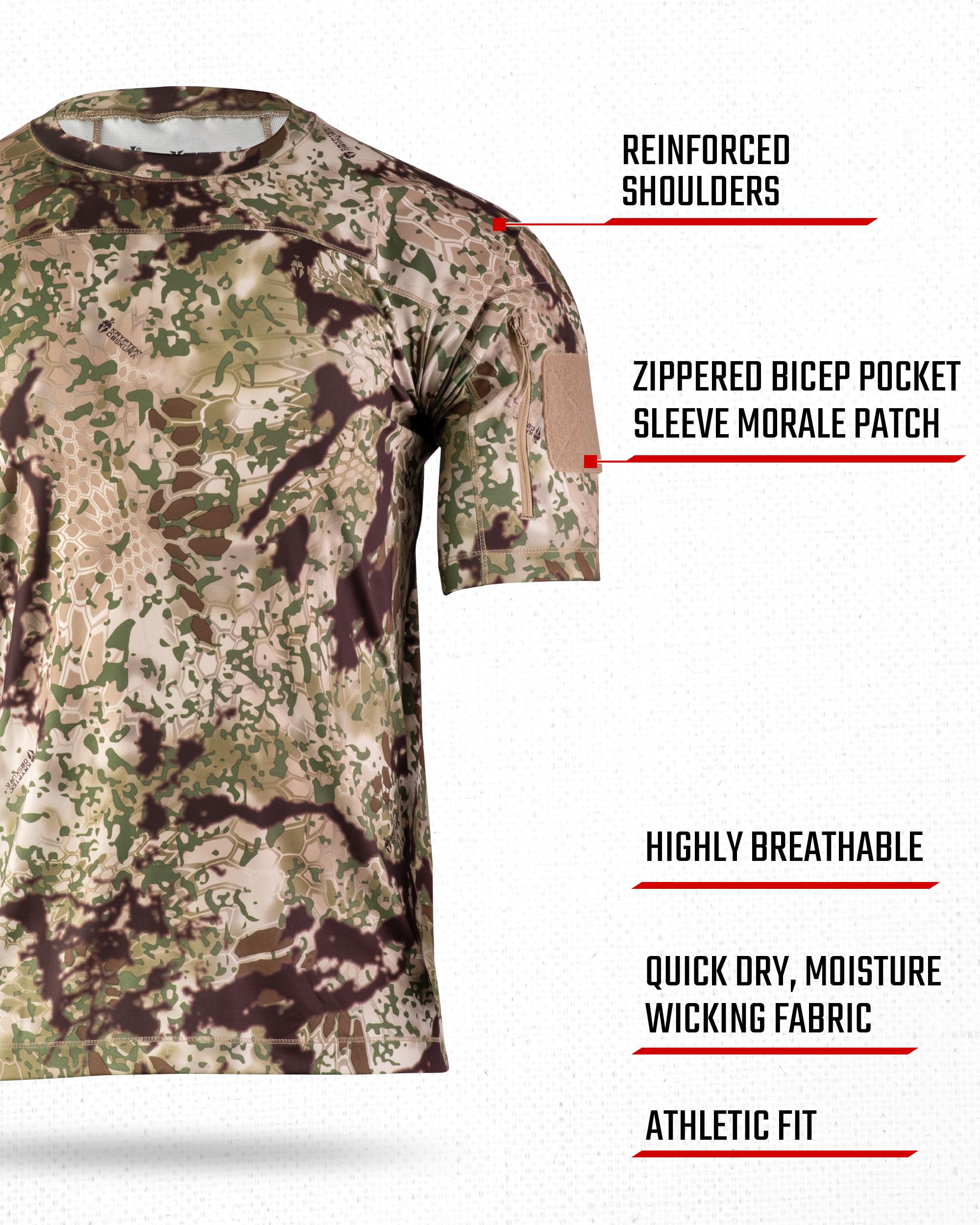 - DESIGNED FOR WARM WEATHER - Kryptek Cooling technology works to reduce fabric temperatures keep you cool and comfortable